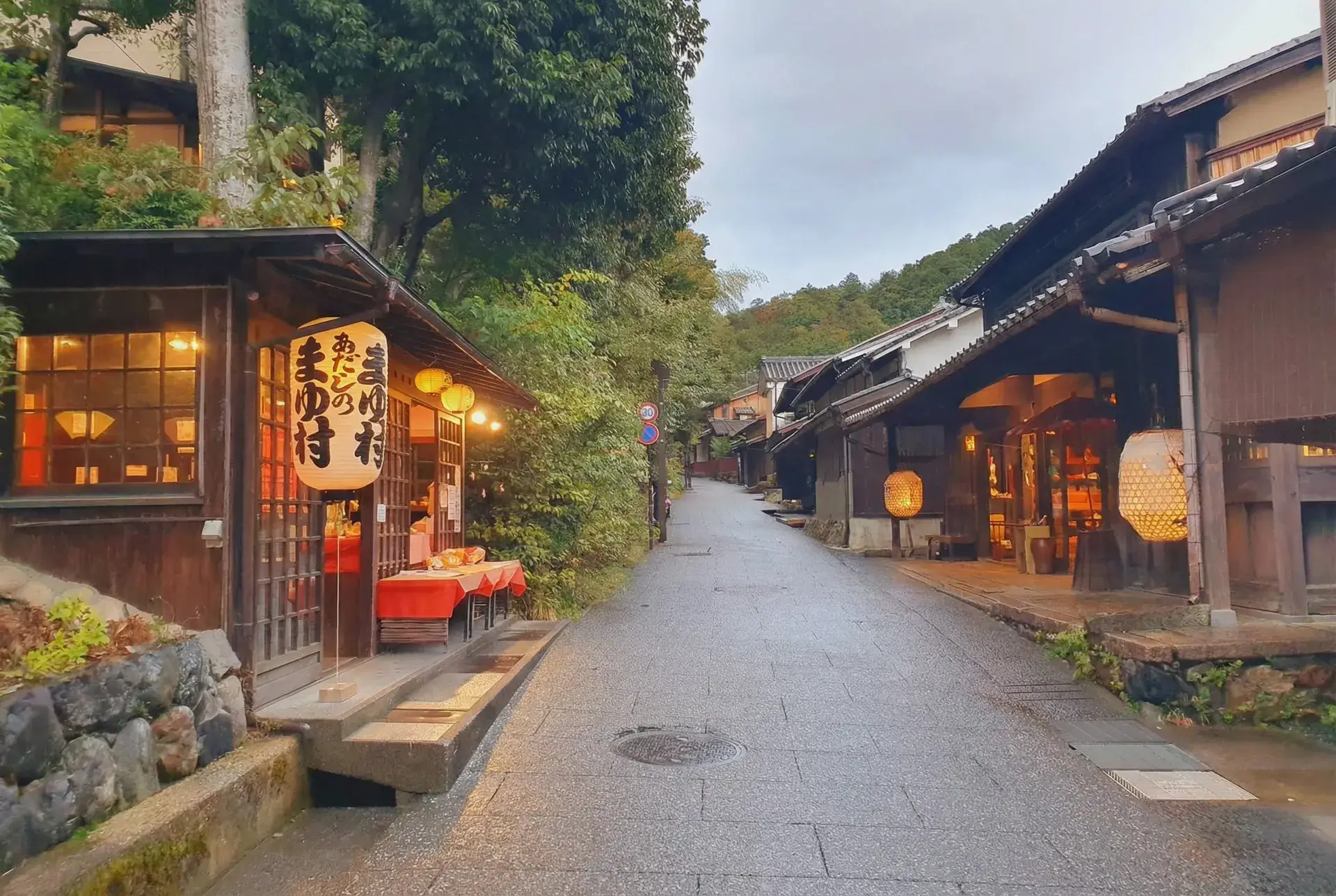 Calle de conservación histórica en Kioto que mantiene la arquitectura rural y el trazado del antiguo camino de peregrinación al monte Atago.