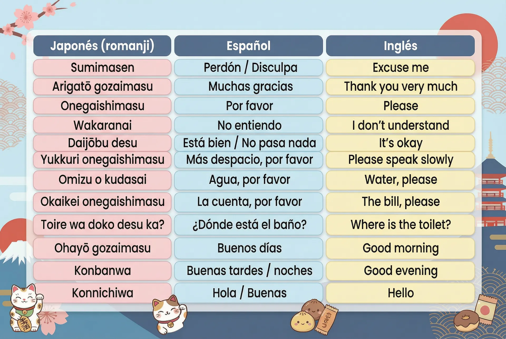 Aun así, conocer unas pocas frases básicas puede marcar la diferencia en el día a día. No para mantener conversaciones largas, sino para desbloquear situaciones sencillas: pedir la cuenta, pedir ayuda o mostrar educación básica. No hace falta aprender japonés, solo lo justo para moverte con más seguridad.