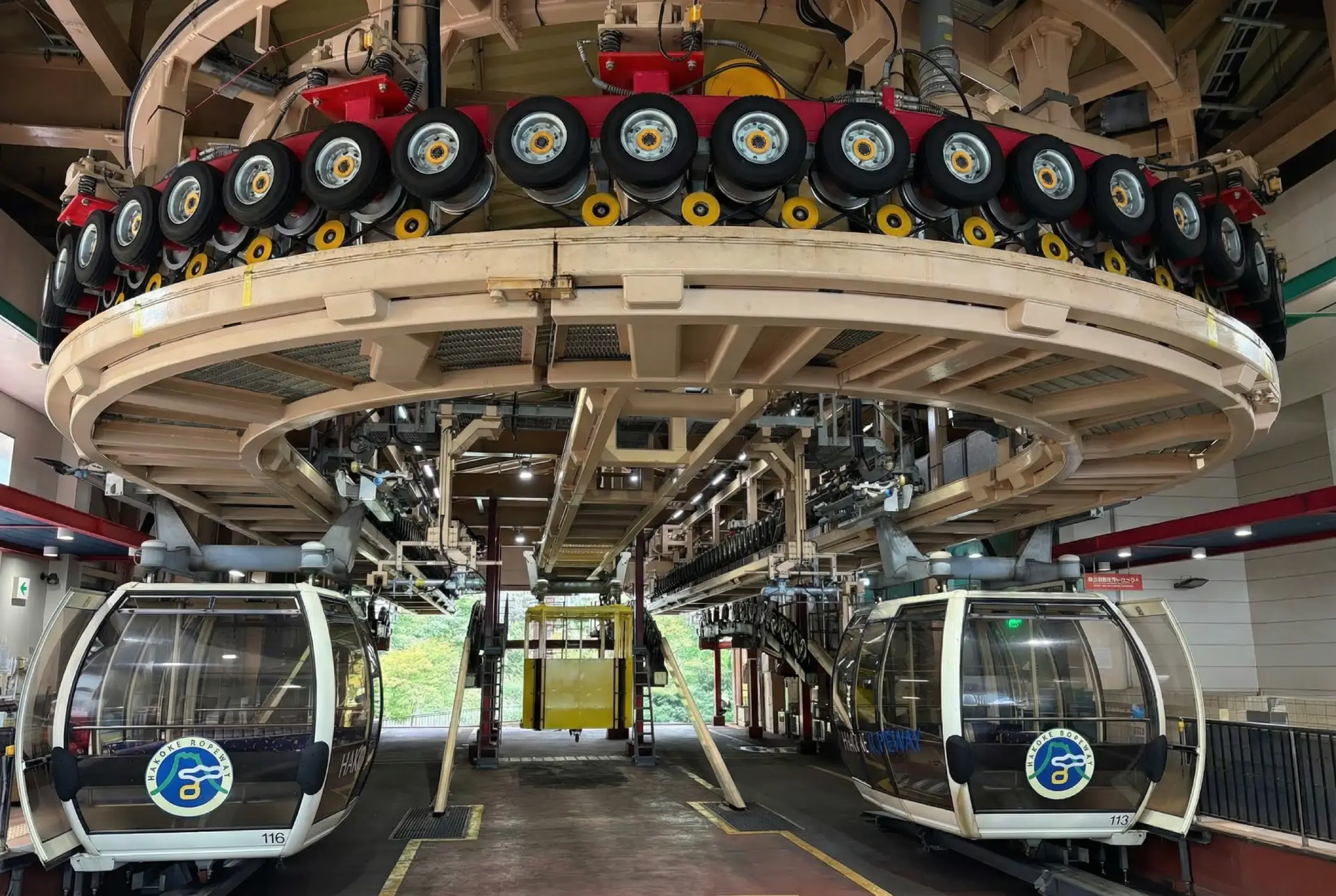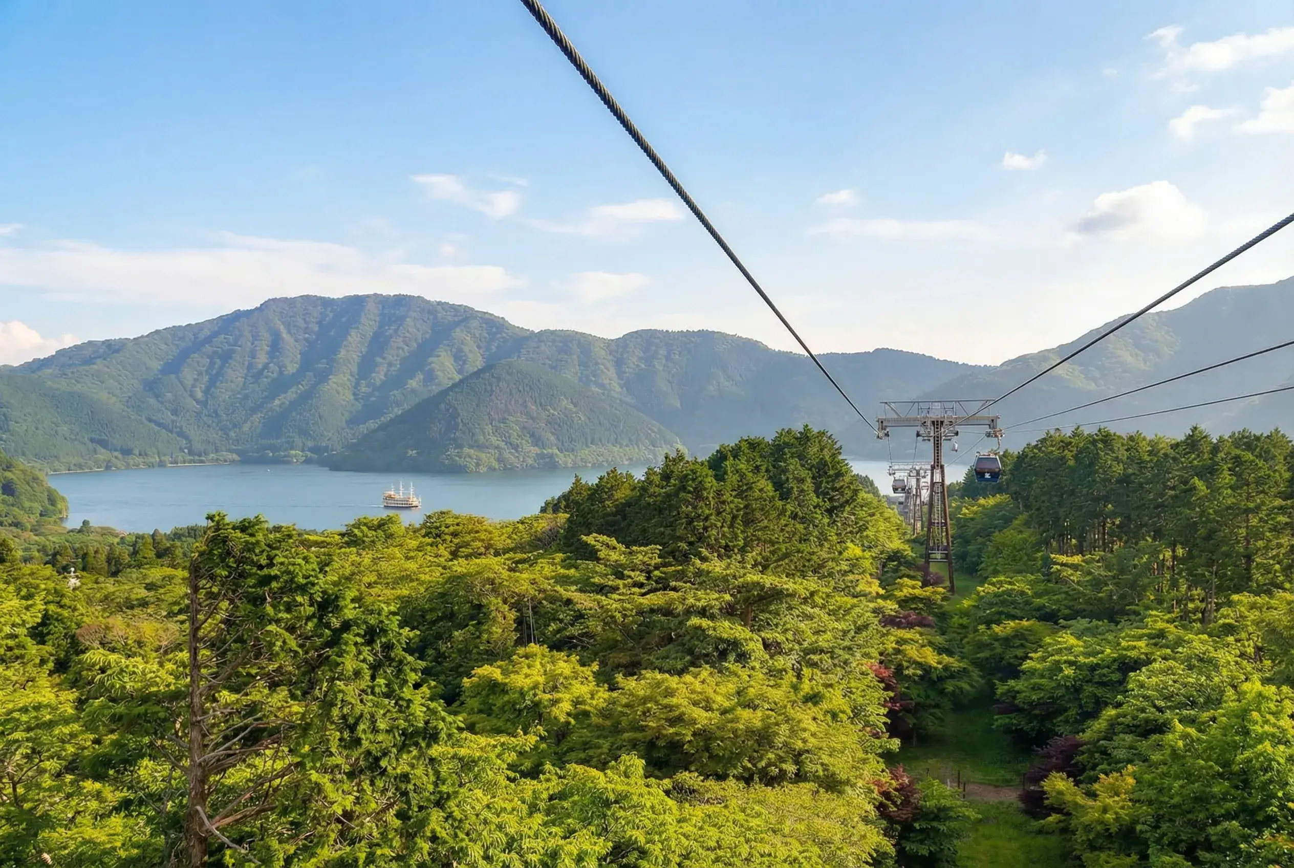 A lo largo del trayecto, las cabinas transparentes permiten observar la majestuosidad del Monte Fuji, las fumarolas del valle de Ōwakudani y el brillante azul del Lago Ashi al fondo. Es una experiencia que combina naturaleza, aventura y serenidad en un mismo recorrido.