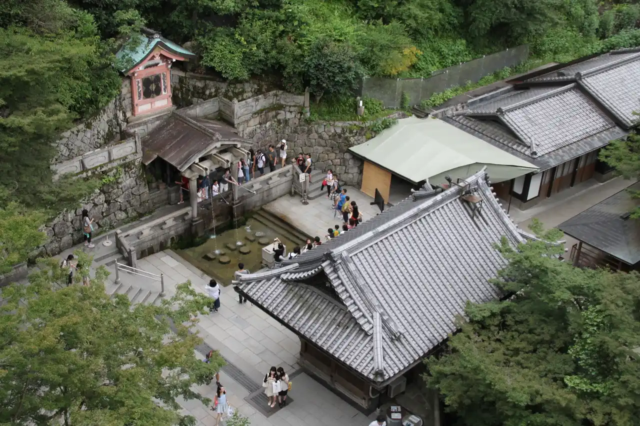 El nombre significa literalmente templo del agua pura, una referencia directa a la cascada Otowa, situada en la parte inferior del recinto y todavía integrada en el recorrido de visita.