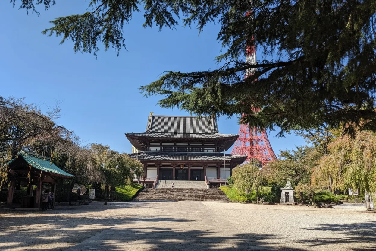 - Es uno de los mejores puntos para fotografiar la Tokyo Tower con el templo al frente, especialmente al atardecer.