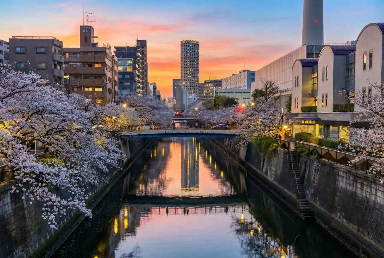 Nakameguro ofrece un paisaje urbano lineal muy definido. No sustituye a parques amplios como Ueno ni a jardines históricos.