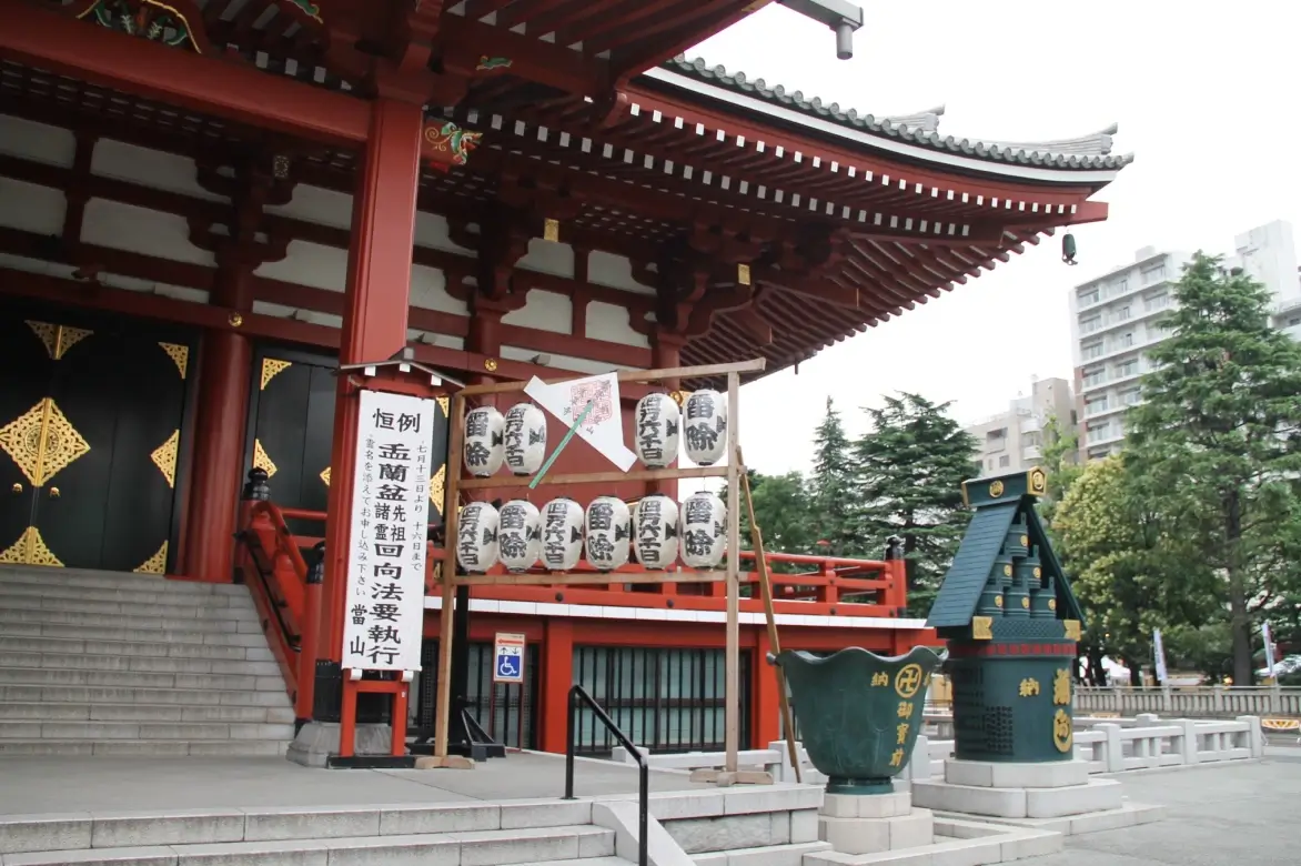 Dentro del complejo hay varios puntos interesantes, como el Bentendo Hall, el templo hexagonal, o la estatua del famoso actor de kabuki Ichikawa Danjūrō IX. Cada rincón invita a detenerse, respirar y observar la vida cotidiana de los tokiotas entre plegarias, incienso y coloridas vestimentas tradicionales.